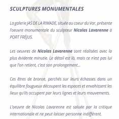 La galerie du Jas de la RImade présente les oeuvres monumentales de NICOLAS LAVARENNE au Port Fréjus.